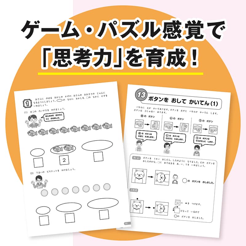 新しい思考力問題に取り組みたい新1年生(未就学児)の生徒を対象に、楽しいゲームやパズル感覚で解ける問題をより多く取り入れ、「数的センス」「条件整理能力」「推理力」を磨き、「応用力・思考力」が身につく算数問題集です。